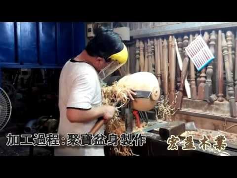 原木裁切=>樹皮處理=>測量=>聚寶盆身、蓋製作=>成品